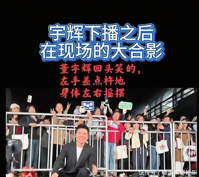 活动结束后,宠粉的董宇辉来到大家面前合影,刚摆出半跪的姿势,粉丝群里就有人喊“123开唱”。